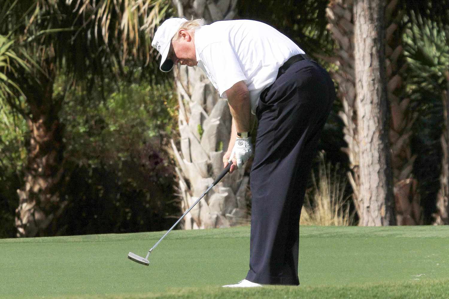 While Trump was enjoying the game sitting in a golf cart wearing his white “USA” cap, people on the streets of Scotland were carrying posters and shouting – “Trump Not Welcome!”
